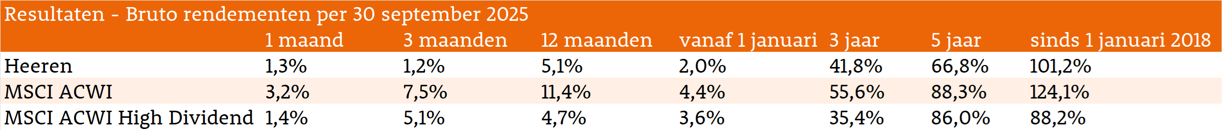 Met ons beleid richten wij ons op kwaliteitsaandelen die een hoger dividendrendement hebben dan het gemiddelde van de MSCI All Countries World Index. Naast de hoogte van het dividend is de verwachte dividendgroei ook een belangrijke pijler waar wij naar kijken. Deze focus op dividendkwaliteit vormt de basis voor stabiele vermogensgroei én een aantrekkelijk inkomen uit uw beleggingen.