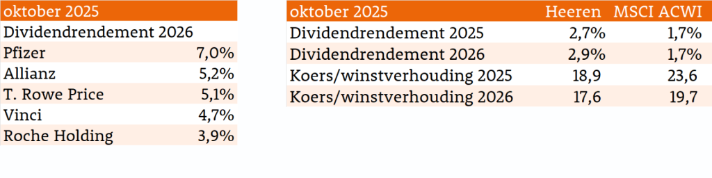 In oktober bepaalden de AI-gerelateerde aandelen uiteindelijk toch weer de trend op de aandelenmarkten. In het begin van de maand zorgden de achterblijvers voor een stijging van de indices, maar aan het einde van de maand zagen we het bekende plaatje terugkeren. De usual suspects zorgden voor de grootste stijging, al waren de achterblijvers ook gestegen. De MSCI All Countries World Index steeg met 4,1%, terwijl de portefeuille van Heeren een rendement van 2,9% boekte.